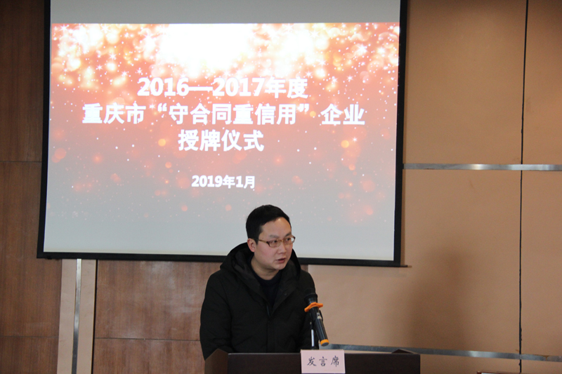 公司總經理作為2016-2017年度重慶市“守合同重信用”微型企業代表上臺發言。